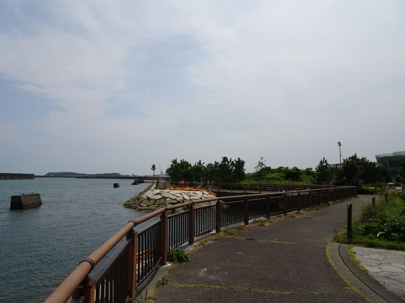 海に面している公園です。ふぃしゅーな側に駐車場がありますが、こちらは10台程度しか止められないです。道を挟んだところに空き地、施設の駐車場を利用することになります。