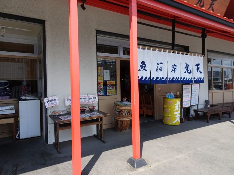 沼津港周辺は完全に観光地化して、水族館、飲食店、土産物屋が建ち並びます。丸天もその中のひとつ。朝は10時開店ですが、9時から営業することもあります。