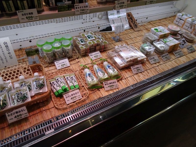 当然、生ワサビも扱っていますが、加工品も豊富です。加工品は要冷蔵物が多いので、保冷剤があっても長時間移動する人は、クーラーを持参すると安心です。