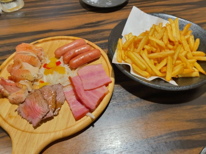 肉食べ放題、飲み放題3000円(税抜き)のコースを注文しました。料理はサラダ2種、ポテト、あとは肉です。肉は4種、食べ放題です。後半、ベーコンがつらくなってきます。