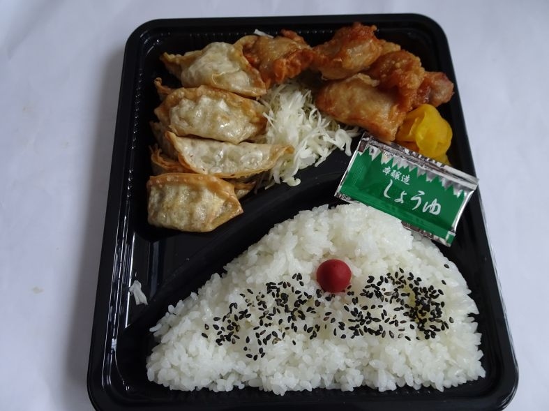 弁当メニューの中に揚げ餃子弁当があったのでそれを購入。小振りの揚げ餃子8個と唐揚げ2個で600円(税抜き)です。