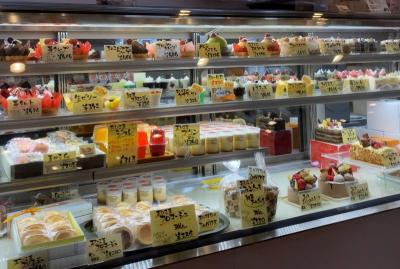 色鮮やかなケーキが並びます。ケーキはどれも450円(税抜き)以上。シュークリームだけが100円台です。