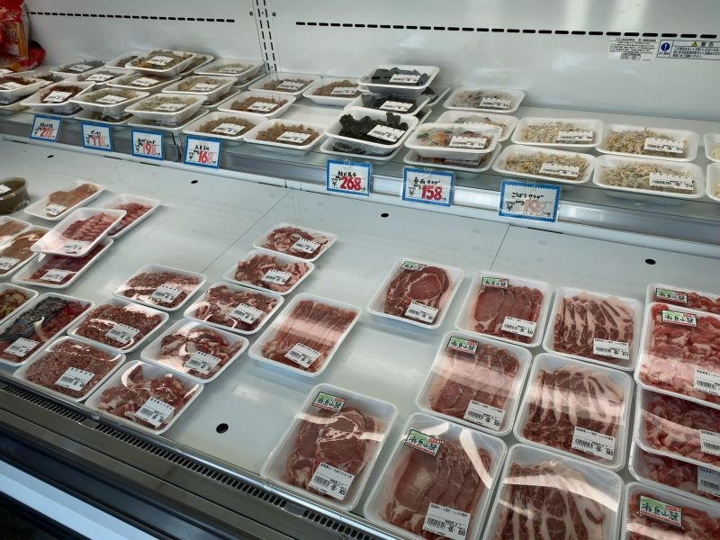 冷蔵ショウウィンドウに肉が並んで、そこから肉を選ぶシステムではなく、スーパーマーケットのようにトレーと小分けされて販売されていました。