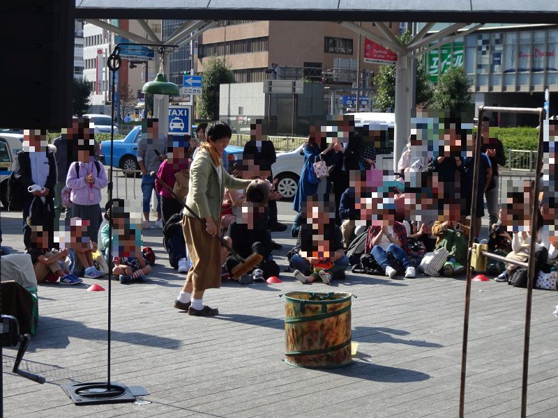 街中の色々なところでパフォーマーがパフォーマンスをしています。どこも人だかりで、後ろだと良く見えません。