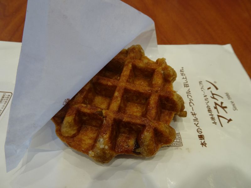 店の前を通ると甘い香りがしてきます。秋なので栗が入ったワッフルを買ってみました。栗の粒が生地に練りこんでありました。栗の香りや味もちゃんとしました。