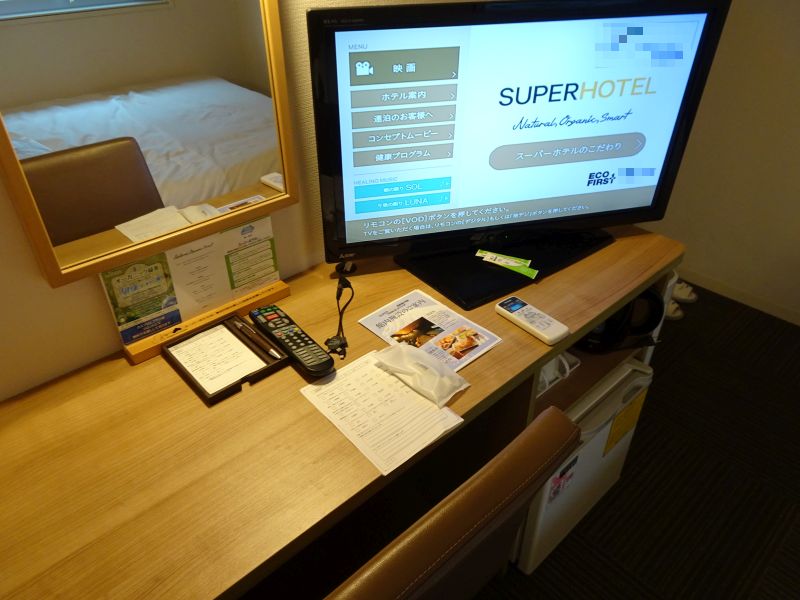 久々のスーパーホテルへの宿泊。部屋は広くないけど、スタッフは元気があって好感が持てます。部屋も清潔でした。