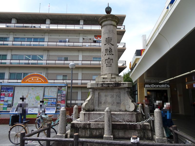 塔には「東照宮」と書かれているので、東照宮に関係する塔であることは明白。久能山にある東照宮が何故静岡駅南口に塔を設置したのか謎です。- 旅行時期