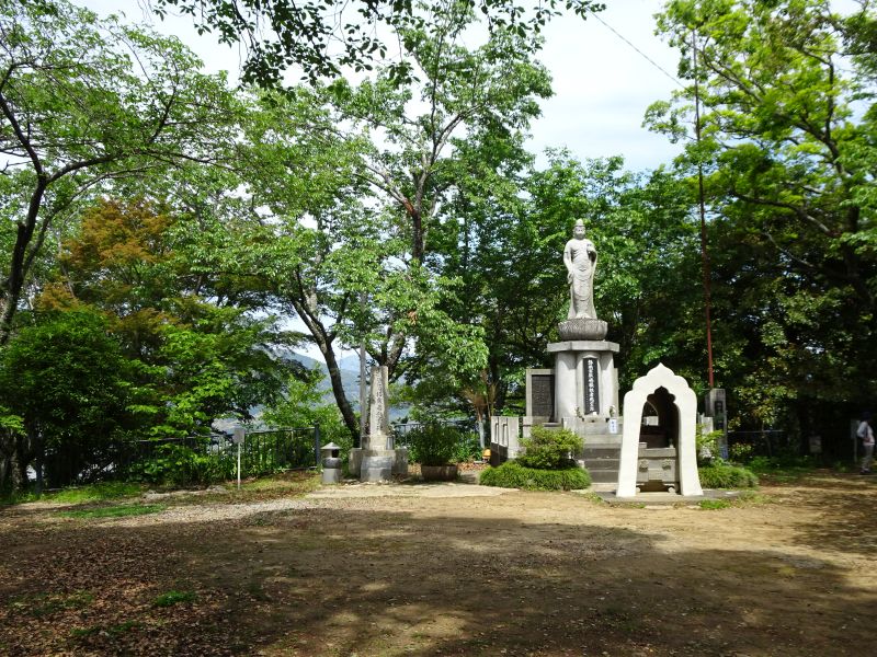 浅間神社内にある麓山神社の先にあります。麓山神社へ行くためには、100段の階段を上ります。