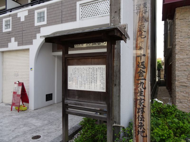 誰でも知っている東海道中膝栗毛の作者、十返舎一九の生家跡です。静岡北口の繁華街を抜けた、少し静かなところにありました。アパートの前です。