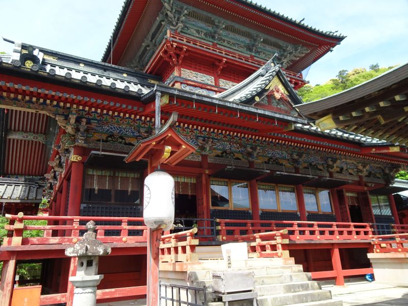 楼門をくぐるとロの字の建物で囲われた閉ざされた空間になります。目の前に大拝殿がありました。高さ25mの見事な拝殿です。塔のように積みあがった楼閣造りです。