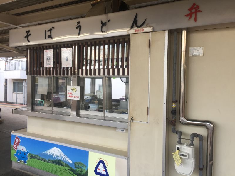 何十年前からある駅ホームの立ち食い蕎麦屋。その昔は東海道線のホームにもあった気がしますが、今は身延線のホームだけになりました。