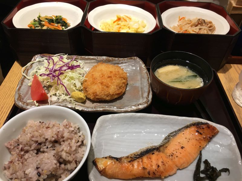 小鉢はどのランチセットにも付いていてお替り自由、ご飯も白米、炊き込み、五穀米が選べて、品を変えてお替り自由。その辺も薄くコストに乗っているのでしょう。
