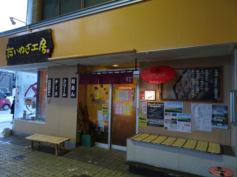 本店というので大きな建物を想像していましたが、同じ感じでした。店の前にはイートインスペースも設けらていました、しかし、外なので冬は寒いです。