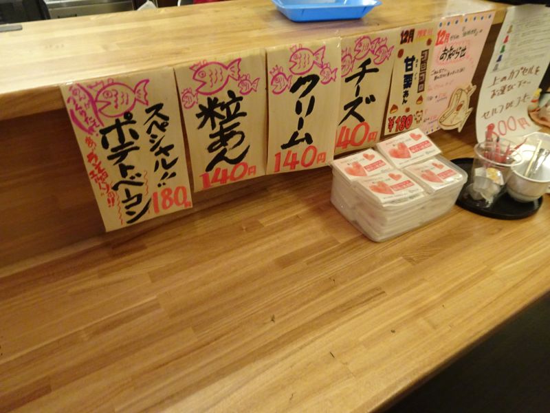 最近のたいやきは小豆餡の他にクリーム、クロワッサン生地とは色々ありますが、こちらのたいやきも中身の種類が色々ありました。