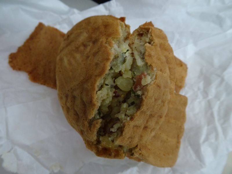 たいやきはポテトベーコンを購入。たいやきにポテトベーコンは合うのかな?と思いましたが、ベーコンの塩味とポテトの甘さがうまくマッチしていていました。