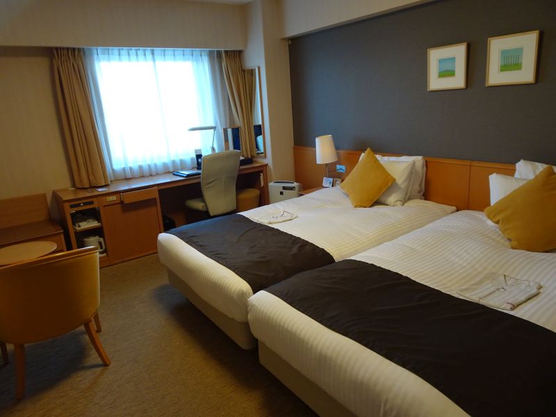 ツインの部屋に泊まりまりたが、綺麗且つ落ち着いており過ごしやすい。テレビが壁掛けなので、ベッドに横になって観るにはちょうど良いが、椅子に座って観るときは斜めになって観にくい。
