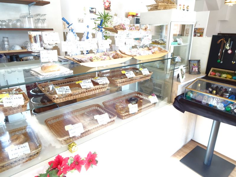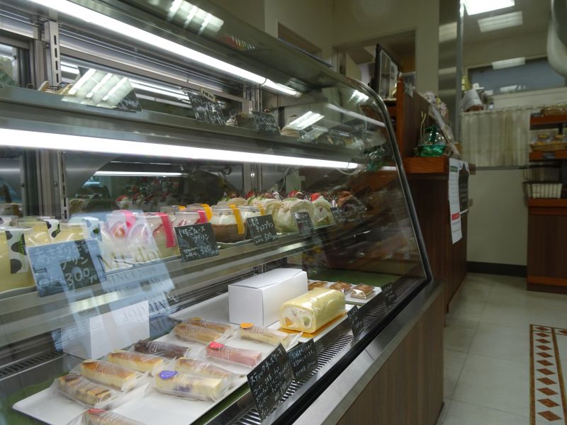 個人店のケーキ屋。ショーケースには色とりどりのケーキが並んでいます。焼き菓子も豊富でした。