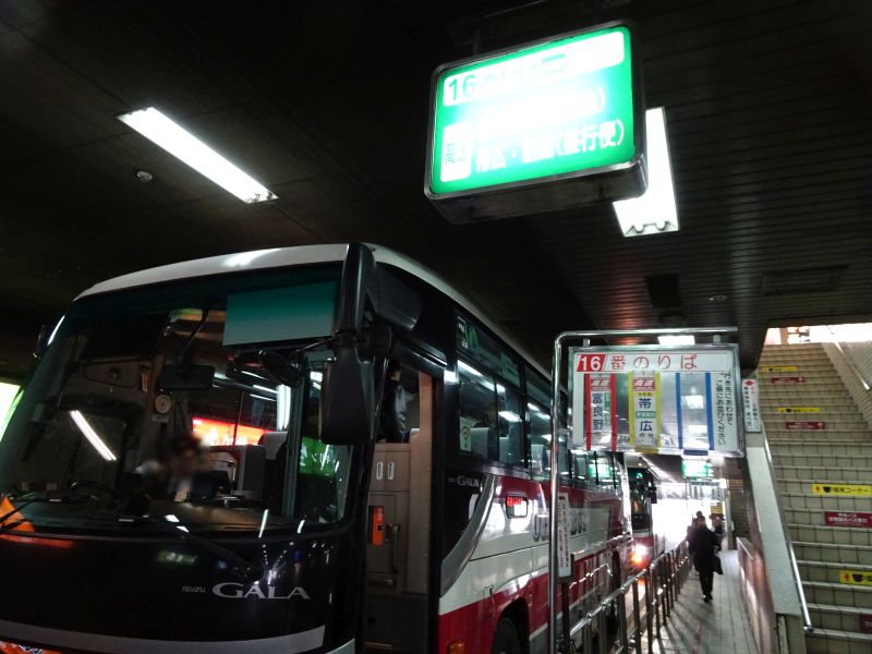 こちらのバスターミナルは初めての利用。エスタ地下食品売り場の通路を歩いていると、バスターミナルへの案内板や地上に出る階段はいくつかあり分かりやすいと思いました。