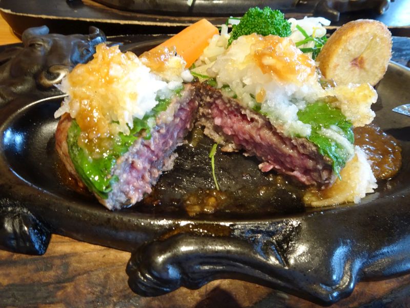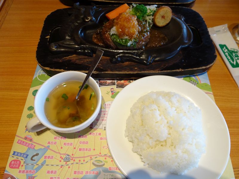定番のげんこつやおにぎりハンバーグも選べますが、ランチ限定、和風ハンバーグランチをいただきました。肉は170g、税込907円です。