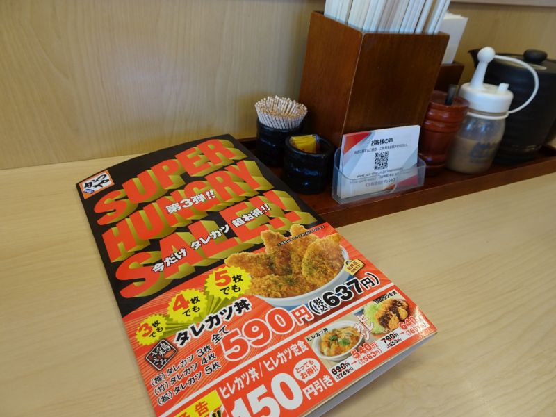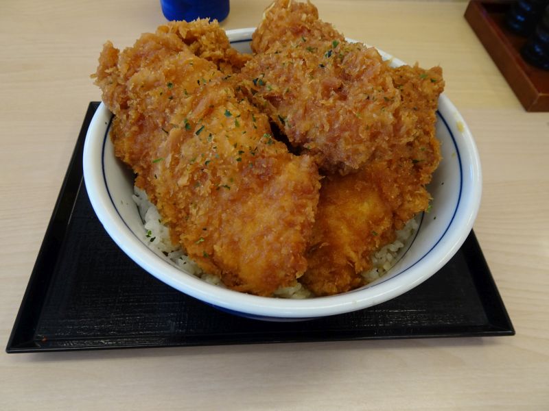 タレカツ丼(チキンカツ丼)のカツが3枚でも5枚でも同じ価格637円だとというので5枚を注文。