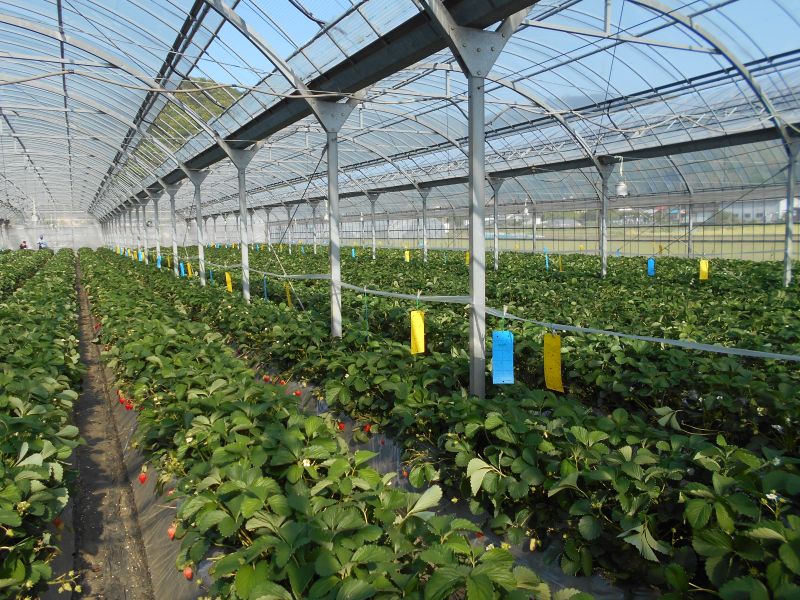 ハウスいっぱいにいちごが植えられており、赤いいちごがたくさんなっています。貧乏性なので入園料の元が取れるか?といつも考えてします。