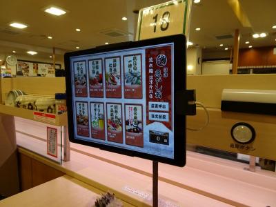 回転寿司ではなく寿司レストラン。注文はテーブル上のタッチパネル、料理が運ばれてくるのがテーブル横のレーン。