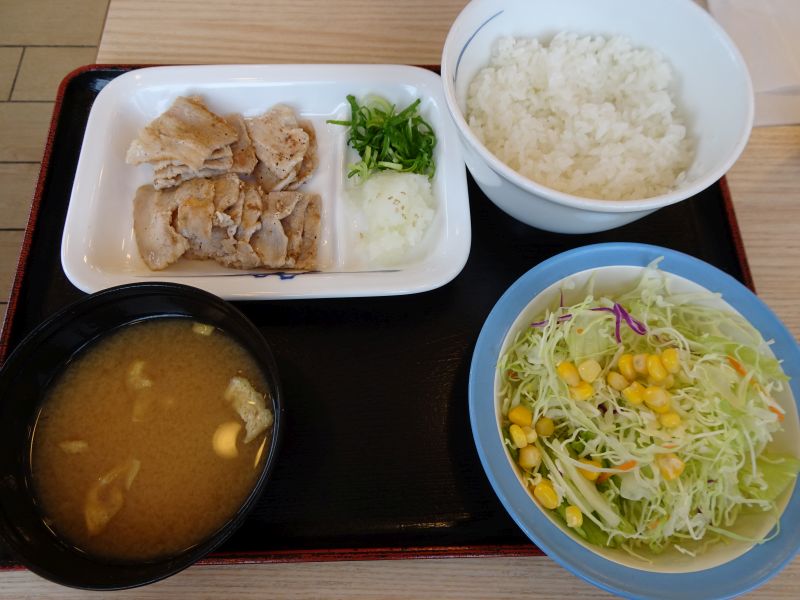 松屋の牛丼には味噌汁が付いているので、ちょっと嬉しいですね。この日は、豚バラ焼肉定食を注文。