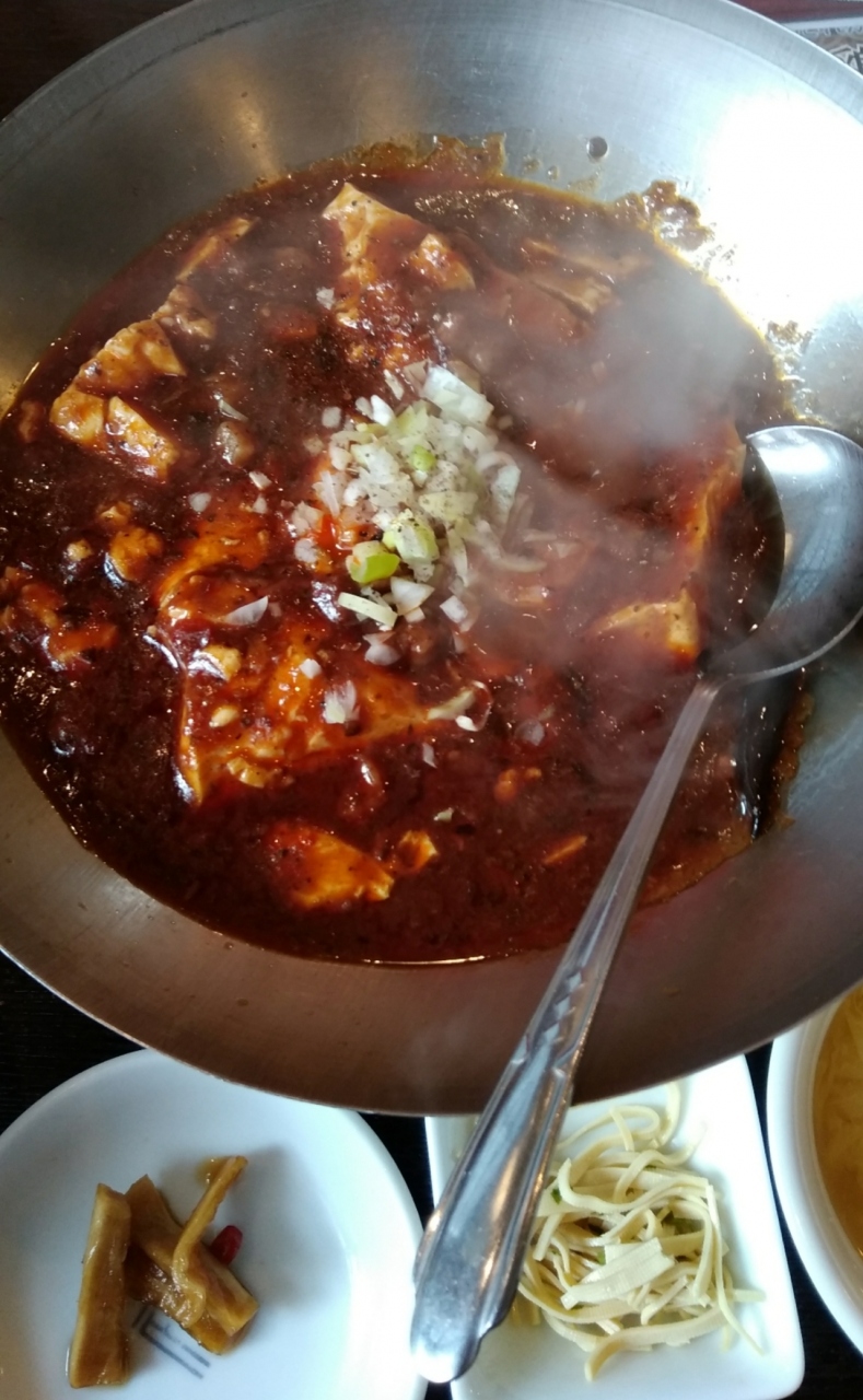 中華街の中の中華とはまた違った感じの料理で、ランチメニューの麻婆豆腐火鍋定食800円を食べましたが、麻婆豆腐の火鍋の下には固形燃料の火がついているので、熱々で辛さもしっかりあり、800円にしてはとても満足感が高い内容でした。
