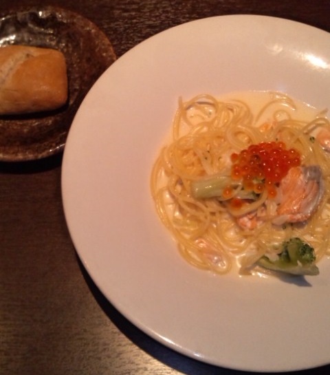 以前から気になっていた、サーモンといくらのクリームソースのパスタが食べたくて行きました。
