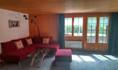 広々としたリビングダイニングはおしゃれで居心地がいい。ベランダにある椅子に座ってアイガーを眺めながらコーヒーやビールを楽しめるおススメの宿。- 旅行時期