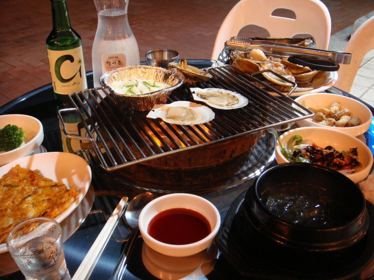 土鍋に熱々で出てきて、酢をスプーンに一杯入れるのがお店の?現地の?流儀との事。タレはもちろんコチュジャン味。