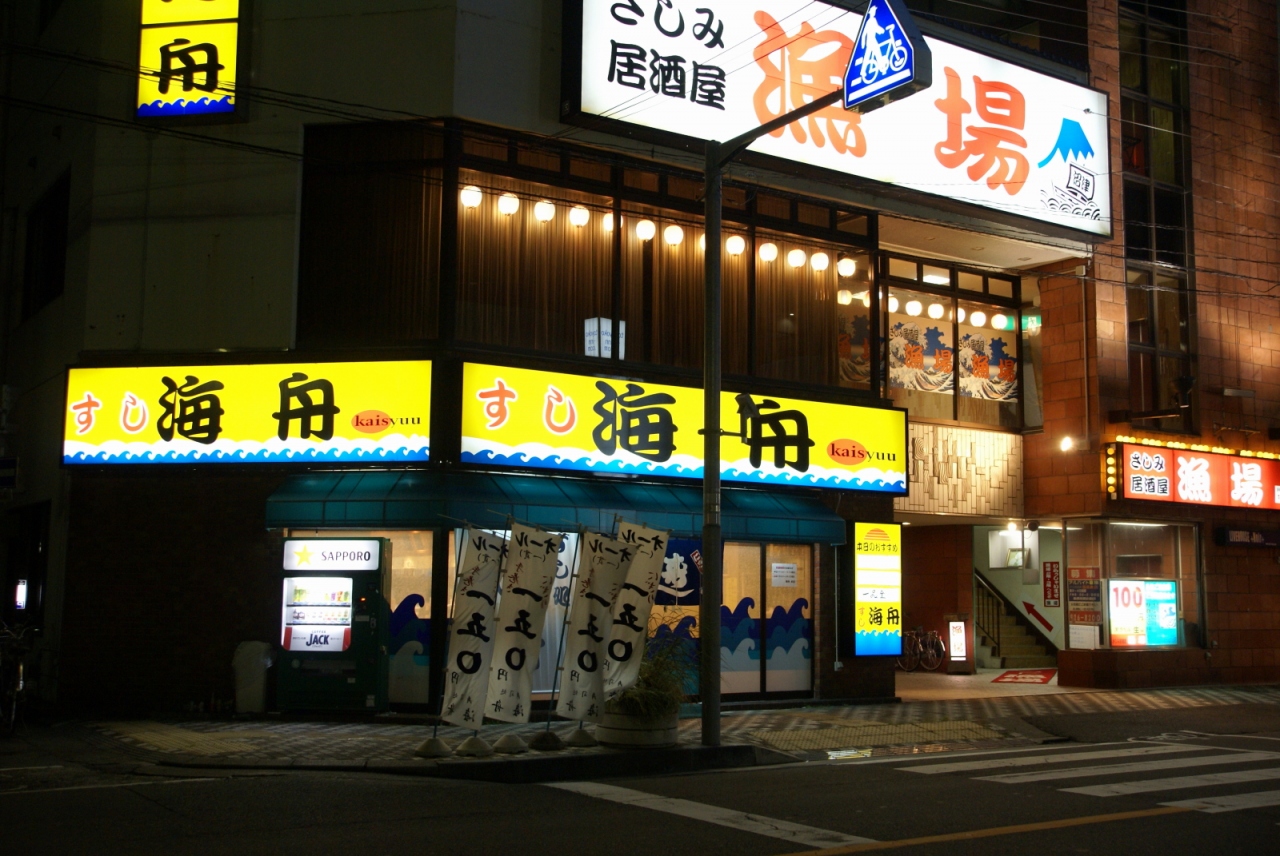 平日はAM3:00まで、休日も0:00まで営業しています。深夜営業ですが、全うな寿司屋さんで、一貫どれでも150円の判りやすいお会計。