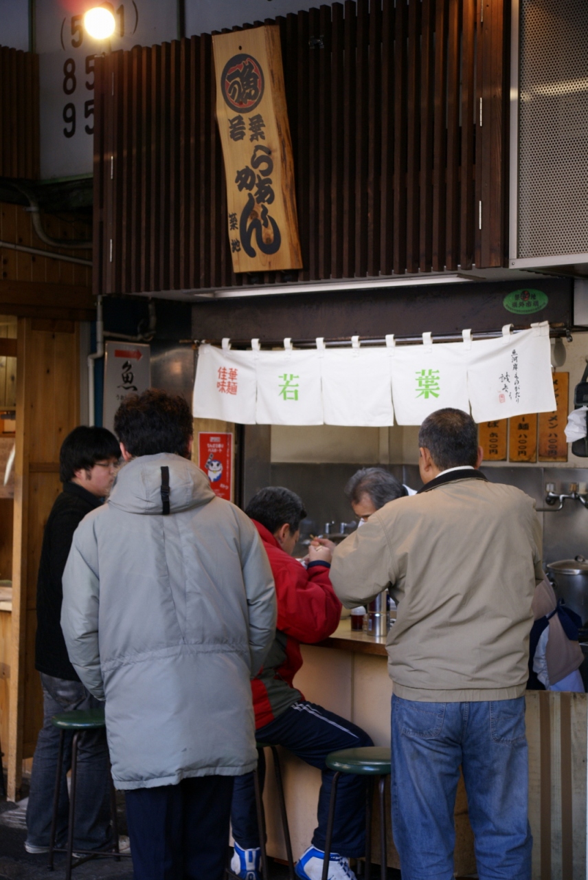 ホルモン丼(\750)や肉豆腐(\550)が人気で、土曜の朝なんぞは並んでいます。お店はカウンター5席と、後は路上に立ち食い用の台が二つ。