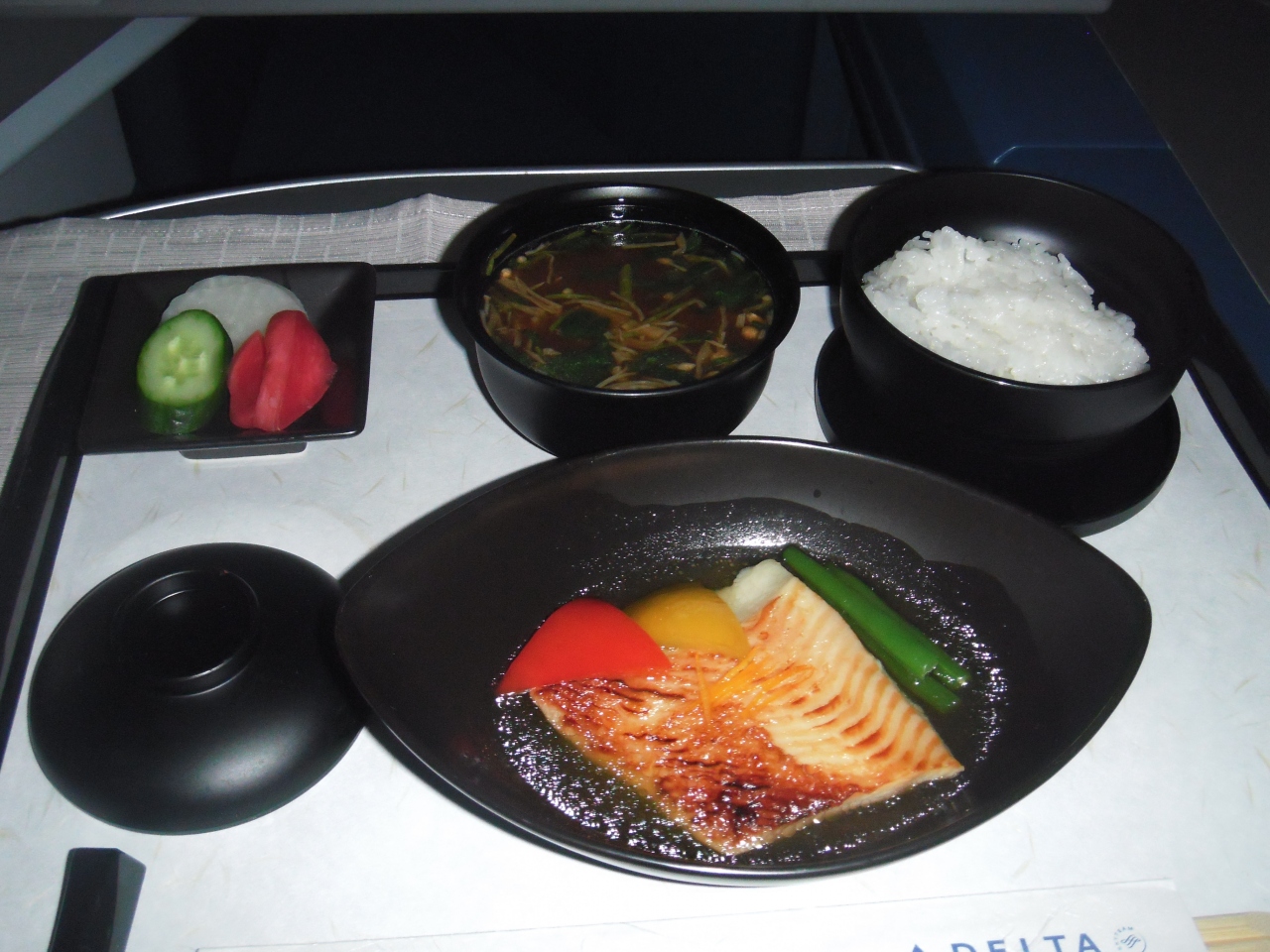 食事は行き帰りとも和食をお願いしましたが、日本発の