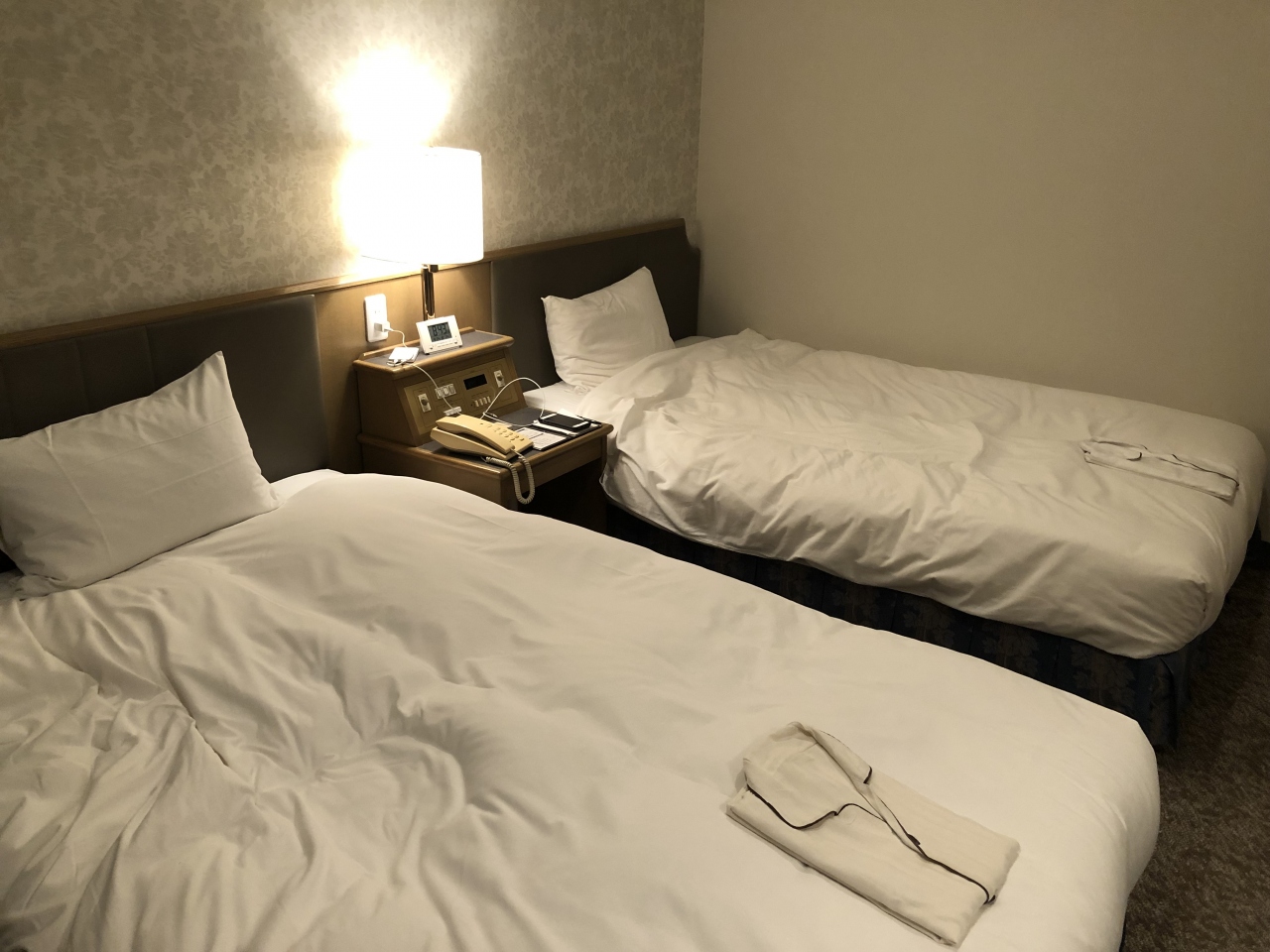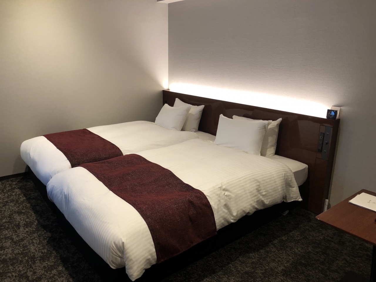 デラックスツイン30m2に2泊しましたが、広くてゆったりしています。風呂トイレがセパレ-トなのでとても使いやすいです。立地は繁華街が近く夜食事に困ることはありません。下通もすぐ近くなので雨でもさほど濡れずに歩けます。1階にコンビニも入っているので急な買い物も可能です。朝食はプレ-ト式で洋食、和食どちらかを選べます。飲み物やスープ、ご飯はビュッフェ式です。パンがとても美味しかったです。