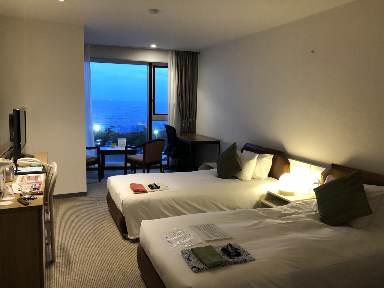 犬吠埼にありちょっと遠いですが、眺望は良く灯台や海が良く見えます。ホテルには屋外プ-ルや足湯もあり夏場は良いと思います。ホテルは少し古いですが清潔で良いです。洋室に泊まりましたがゆったりと広く、良かったです。食事が豪華でとても美味しかったです。個室のテーブル席でゆっくりと静かに食事を楽しめます。