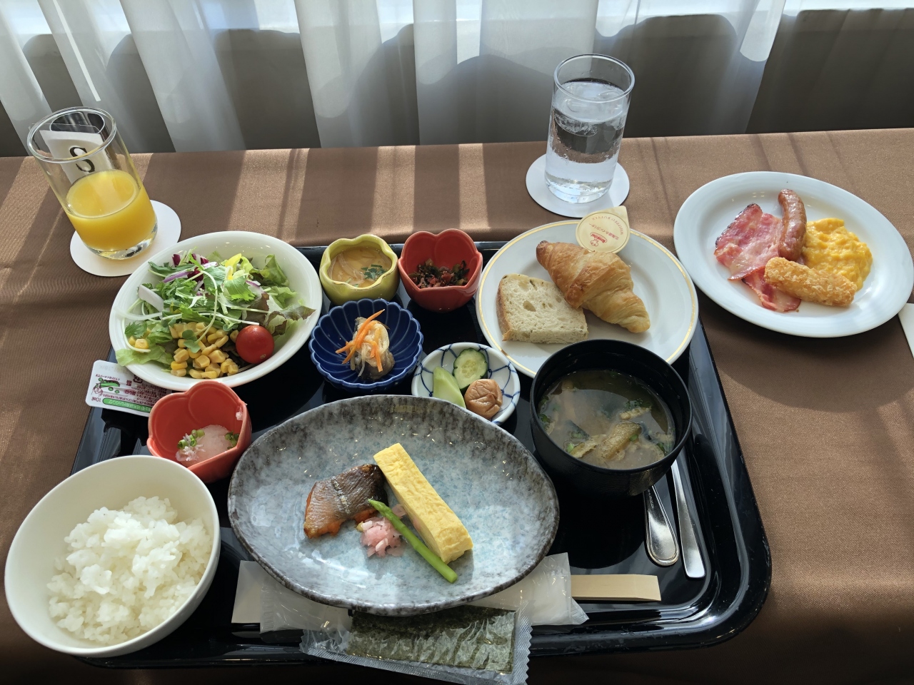ツイン朝食付きで一泊13,794円でした。直接ホテルに申し込むのが一番安かったです。部屋は比較的広く水のペットボトルはサ-ビスです。大浴場とサウナがあり大浴場は1日中入れます。朝食は一善出出しですが、量も多くおいしいです。