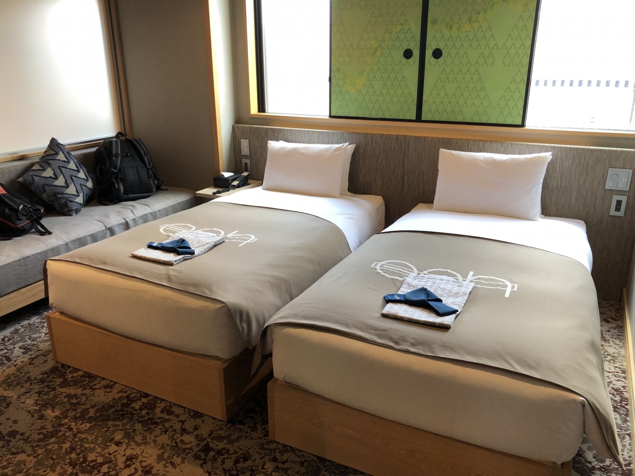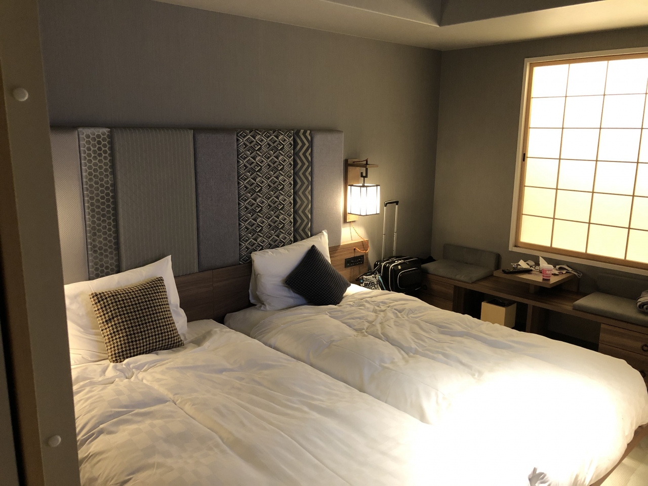 烏丸駅から徒歩で7~8分と便利です。周辺には食事する店も多くコンビニもあります。部屋はベットですが畳敷きで気持ち良いです。トイレやお風呂は清潔でアメニティは巾着袋ごと持ち帰りできます。朝食は1階レストランでビュッフェですが、コロナで人数制限していることと少し狭いので宿泊客が集中する時間帯は混んでしまい並ぶことになります。食事の内容はさほど品数が多くありませんでした。