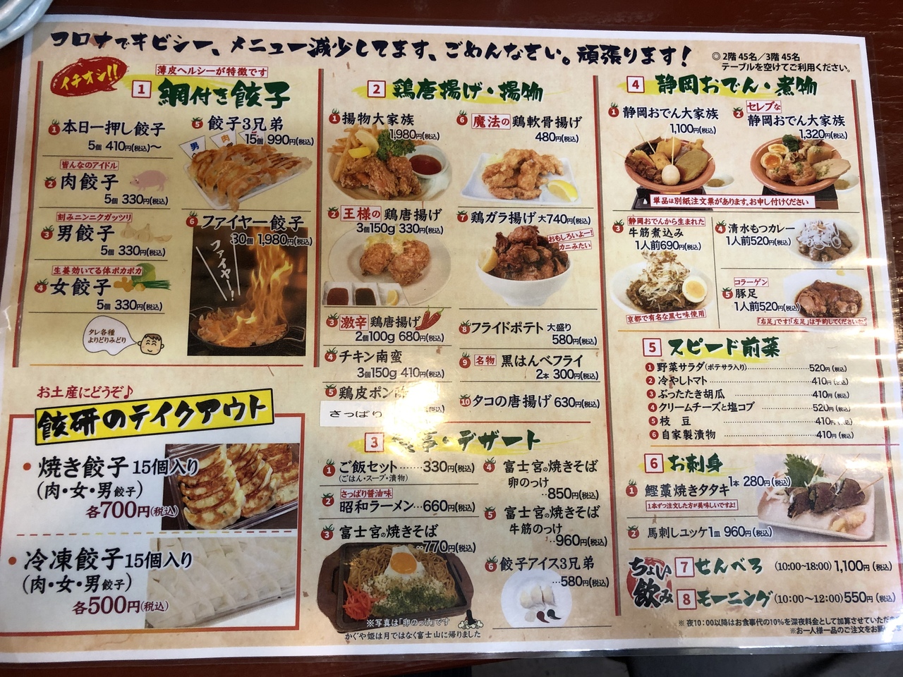 出張で夜静岡入りしました。一人雨の中、食事でもしようかと、ホテル前にあったのこの店を覗いたところ、店員さんが爽やかな笑顔でどうぞとカウンターに案内してくれました。隣りとの間にビニールシートがありコロナ対策もされてます。餃子が人気の様で地元の方もテイクアウトしてました。静岡おでんと餃子で一杯、とても美味しかったです。店のおばちゃんも親切に静岡おでんの食べ方を教えてくれました。支払いの時も若い女性の店員さんが、カウンター綺麗に片付けて頂きありがとうございますと言葉かけてくれました。とても気持ち良く店を出ることができました。また行きたいお店です。