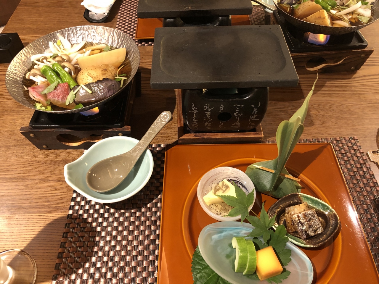 生憎の雨の中到着しましたが、駐車場がホテルと一体となっており、濡れずにフロントまで行くことができます。部屋はスーペリアルームで広めの洋間に泊まりましたが、天井が高くゴージャスな感じでした。部屋風呂も織部焼風呂で外の景色を眺めながら入れるようです。ただ温泉では無い様なので入りませんでした。何といっても和洋折衷の食事が売りだと思います。前菜から多くのメニュ-で見た目も味も楽しませてくれます。デザ-トは8種類全種盛で、希望すればお代わりもできます。女性客を意識したサービスが多いと感じました。コロナ対策もしっかりして時間差でゆったりとしたスペ-スで食べられました。また来てみたいと思った宿です。