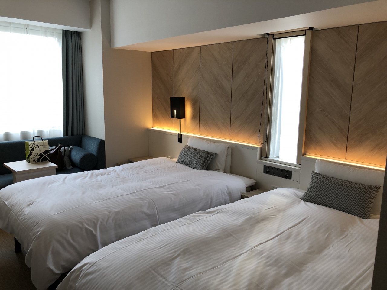 2泊しましたが、立地が良く観光や食事に出かけるのにとても便利です。空港リムジンバスも目の前で止まるので、荷物を持ってあまり歩かなくてよい。部屋はちょっと狭いですが、ツイン朝食付きで10,800円ですので問題ありません。チェックインの時にタブレットの自動検温があり一応コロナ対策万全です。朝食は1膳出しで、洋食、和食両方出てきて食べきれないほどの量です。たくさん食べたい方は良いと思います。