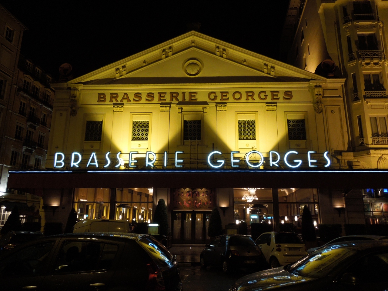 SNCFの駅のリヨンペラーシュ駅前にあるレストランです。地元の人に人気のブラッスリーで10時くらいに行ったのですが混んでました。英語の通じる従業員が少ししかいませんでした。川カマスのクネルとシャンピ二オンのリゾットを頂きました。値段は20ユーロ弱くらいで味は自分には合いませんでしたが夜遅くまで営業してます。バースデーケーキのプレゼントを7組くらいのお客さんがもらってました。