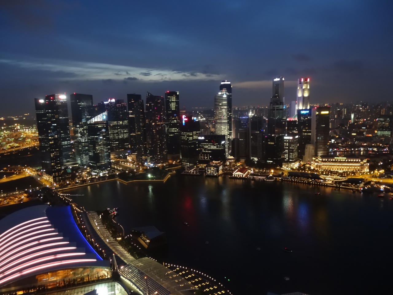 だんだんと夜景に変わる姿は飽きません。1月でしたが、19時30分にはほぼ夜景に変わります。20時のレーザーショウをここから見るのもいい感じです。ただし、地上の噴水ショウはほとんで見れません。景色が見える手摺り側にはずっと座って夜景を待っている人がいるので、一番前で写真を撮るのは多少邪魔になります。カウントダウンの花火ここから見えれば最高なんでしょうが、大晦日は17時でクローズです。