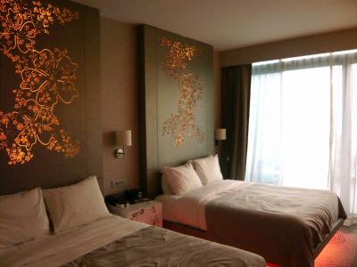 ホームページでは紫色がド派手なホテルという印象でしたが、宿泊してみるとそんなに派手さは感じません。あらゆるところにオブジェがあり、楽しませてもらいました。
