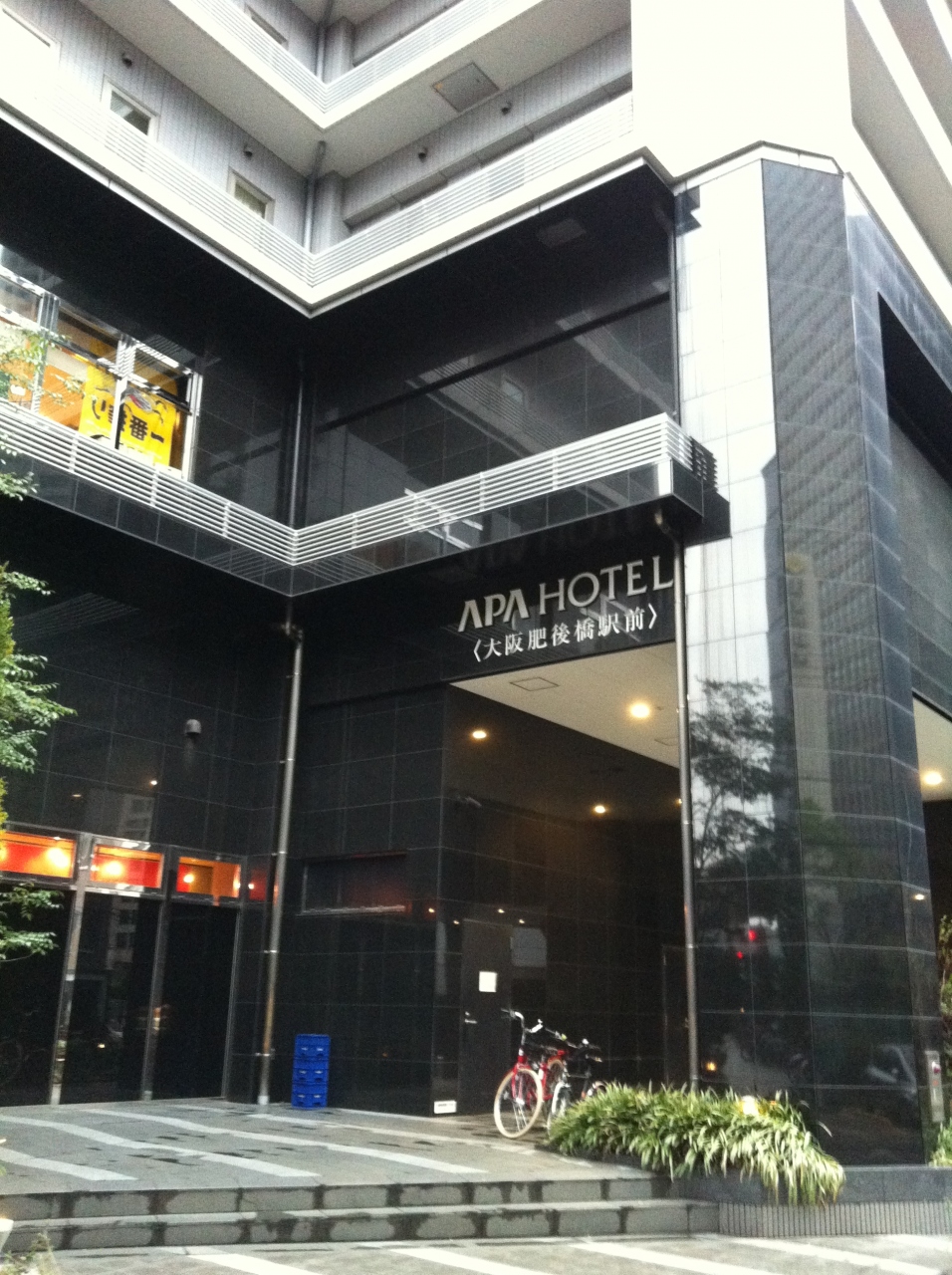 斜め向かいに立っています。高層ホテルで高層部分からの