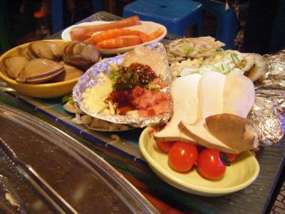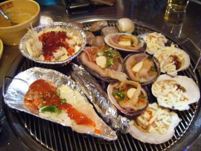 貝料理のお店です。「焼き」か「蒸し」、どちらかの選択ができ、今回は「焼き」で注文しました。数種類の貝が低予算でお腹いっぱい食べられます。他のお客さんは「蒸し」が多かったかな?次回は「蒸し」にして、蒸したあとの貝の出汁でうどんを食べてみたいと思います。
