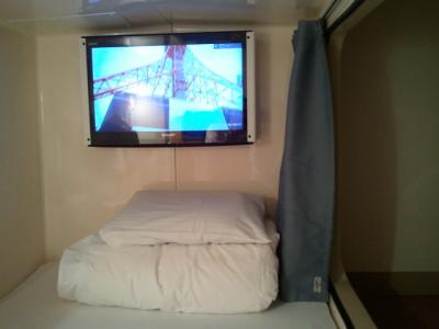 羽田空港内にあるカプセルホテルです。部屋は2タイプあり今回は多少広めのキャビンを選択しました。広々ベットに32インチの液晶テレビ、開放感ある天井で普通のビジネスホテルと遜色無しです。ただし、ドアはなくアコーディオンカーテンで仕切られているだけですので、外の音(人が歩く音、他人のいびき等)はよく聞こえます。耳栓の貸し出しもありますが神経質な人は無理かもしれません。大浴場もありますので旅行の疲れもとれる気がしました。何より空港内にあるので、朝一の飛行機の前泊には最高でした。