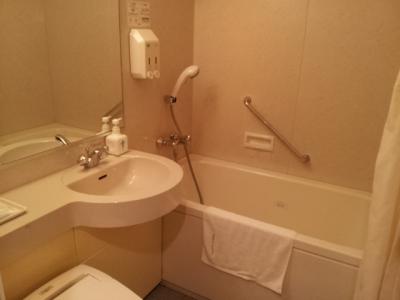 - シャワーは強弱がついたマッサージ可能タイプ。湯船は普通のビジネスホテルより一回り大きいタイプ。