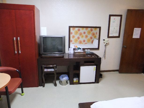 楽店の口コミ参考にして宿泊予約しました。駅出口からも近く徒歩5分圏内にコンビニもあります。ホテルは老朽化が目立ちますが寝るだけと割り切っているのであれば全然問題ありません。ビジネスルームありとの事でしたが小部屋にデスクトップPCが2台置いているだけなので混雑する可能性あります。PCは日本語入力できませんでした。(サイトを見る分には問題ありません)部屋は無線LANダメでした。ノラ電波も入り悪くほぼ使用不可に近い状態、スマホ活用できませんでした。ホテル内にあるサウナは宿泊者は無料(1泊につき1枚の無料券がもらえる)で活用させていただきました。3つくらいの浴槽とサウナ、あかすりがあります。あかすりもリーズナブルで言葉が通じなくとも十分気持ちよさを堪能しました。(私はマグロ状態でしたけど・・・)浴室内シャワーコーナーのすぐ横に男性用の小便器が設置されているのにはびっくりしました。