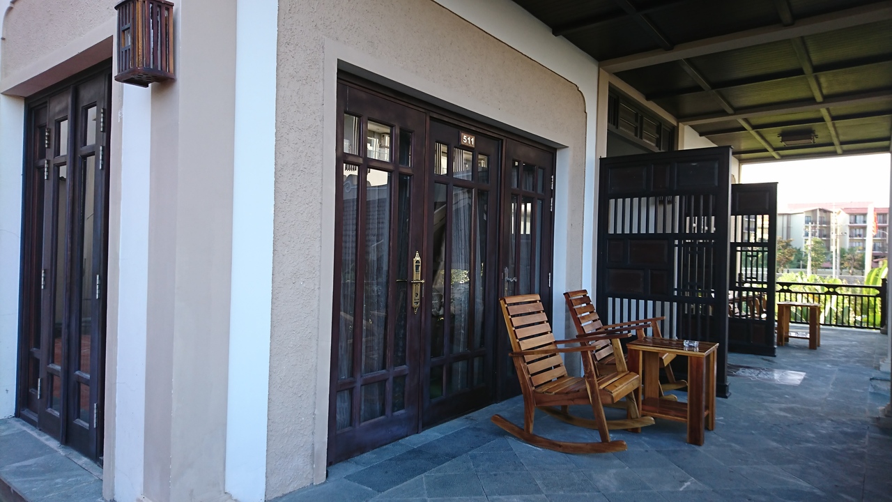 空港から無料送迎車で10分以内。そんなに大きくないホテルですが、フロントの方や掃除する方はすごく対応が良かったです。ビラは空いてなかったので、バルコニー付きの部屋に泊まりましたがエレベーターないので、スーツケースを持って階段を降りるのが辛いと思いました。バスタブ、ビーチ用かごバッグ、サンダルも部屋にあります。毎日水無料です。部屋のカードキーが1枚なのは、大変不便。